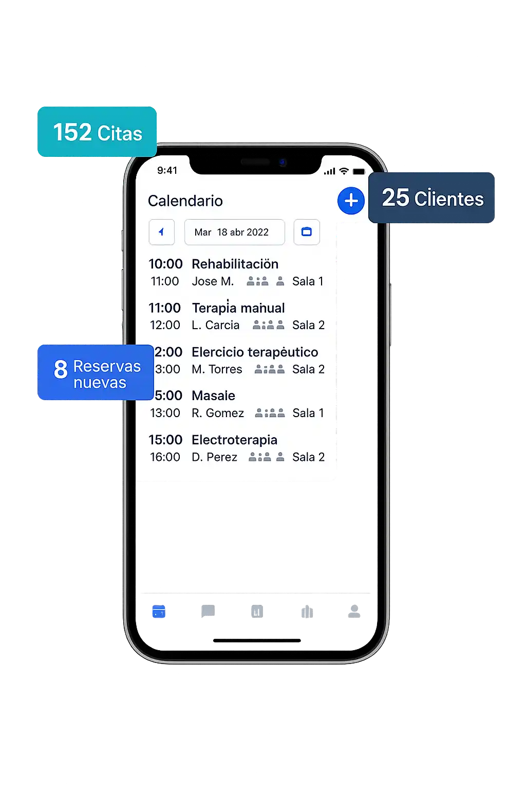 Reservas online, confirmaciones y horarios por profesional y sala. Sin ajustes manuales de última hora